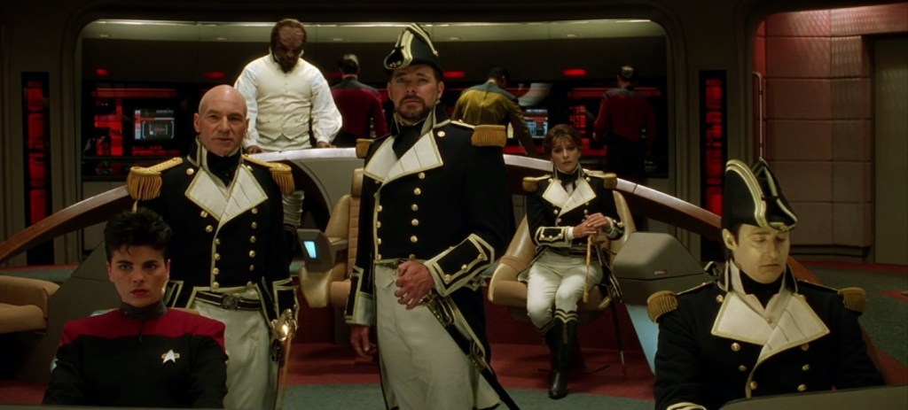 Picard has some fantastic drama in this film. His brother and nephew, whom we met in the outstanding Season 4 episode “Family”, the coda to “Best of both worlds”, have perished in a fire. He is struggling with this grief and the knowledge that he will be the last Picard. Whatever faults the TNG films have, Picard is not one of them. Stewart is a god-level actor and his abilities are never wasted.